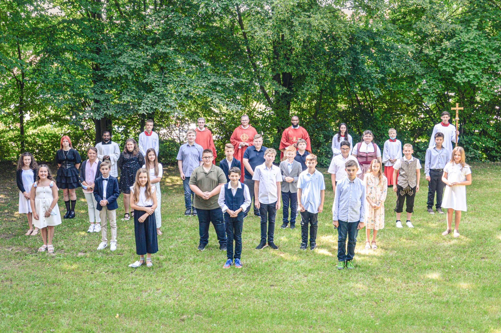 Um allen Firmlingen die Möglichkeit zur Teilnahme mit ihren Familien zu geben, hatte Pfarrer Josef Hausner die Firmlinge in zwei Schichten eingeteilt und zwei Firmgottesdienste angeboten. So konnte er jeweils in der vollbesetzten Pfarrkirche eine festliche Gemeinde willkommen heißen. Sein besonderer Gruß galt Domkapitular Johann Ammer, der im Rahmen der Feier das Sakrament der Firmung spenden sollte. In seine Predigt sprach dieser über das in der Pandemie so bedeutsam gewordene Wort „relevant“ und deutete es auf das zukünftige Leben der Firmlinge, das durch die Firmung an Bedeutung und an Wichtigkeit gewinne und sie als junge Christen an der Verantwortung für den Glauben ganz teilnehmen lasse. Vielleicht wird das Wort „relevant“ bald vergessen sein, aber die Aussage, dass uns Jesus wie im Evangelium vom königlichen Hochzeitsmahl immer einlädt und wir, wie es Paulus im Galaterbrief formuliert, auserwählt sind und dass diese Einladung und Auserwählung ein Leben lang gilt, dürfte bei den Kindern in Erinnerung bleiben. Zur Spendung des Sakraments traten alle Firmlinge mit ihren Patinnen und Paten vor die Gemeinde und wurden dann von Domkapitular Johann Ammer als Zeichen der Erwählung mit dem Crisamöl gesalbt und mit dem Friedensgruß zur Nachfolge gerufen. Umrahmt wurden die beiden festlichen Gottesdienste durch wunderbare Lieder von Mitgliedern der Kirchenchöre der einzelnen Dörfer unter der Leitung von Helena Kollmannsberger und dem Organisten Markus Wolf. Pfarrer Josef Hausner dankte allen, die zum Gelingen dieses wunderbaren Tages einen Beitrag zur Vorbereitung und Durchführung geleistet hatten, insbesondere Domkapitular Johann Ammer und wünschte sich, dass die Firmling über den Festtag hinaus der Kirche treu bleiben. Im Anschluss an die Feier ließ sich der Firmspender mit allen Kinder, auf Wunsch auch einzeln, im Pfarrgarten fotografieren und gab sich als leutseliger Niederbayer bei manch kleinem Gespräch zu erkennen. Am Rande des Firmtages gab es in der Familie Wimmer noch einen Höhepunkt, als dort die schwerstbehinderte Tochter Helena im Kreise der Familie persönlich noch das Firmsakrament von Domkapitular Ammer erhielt.