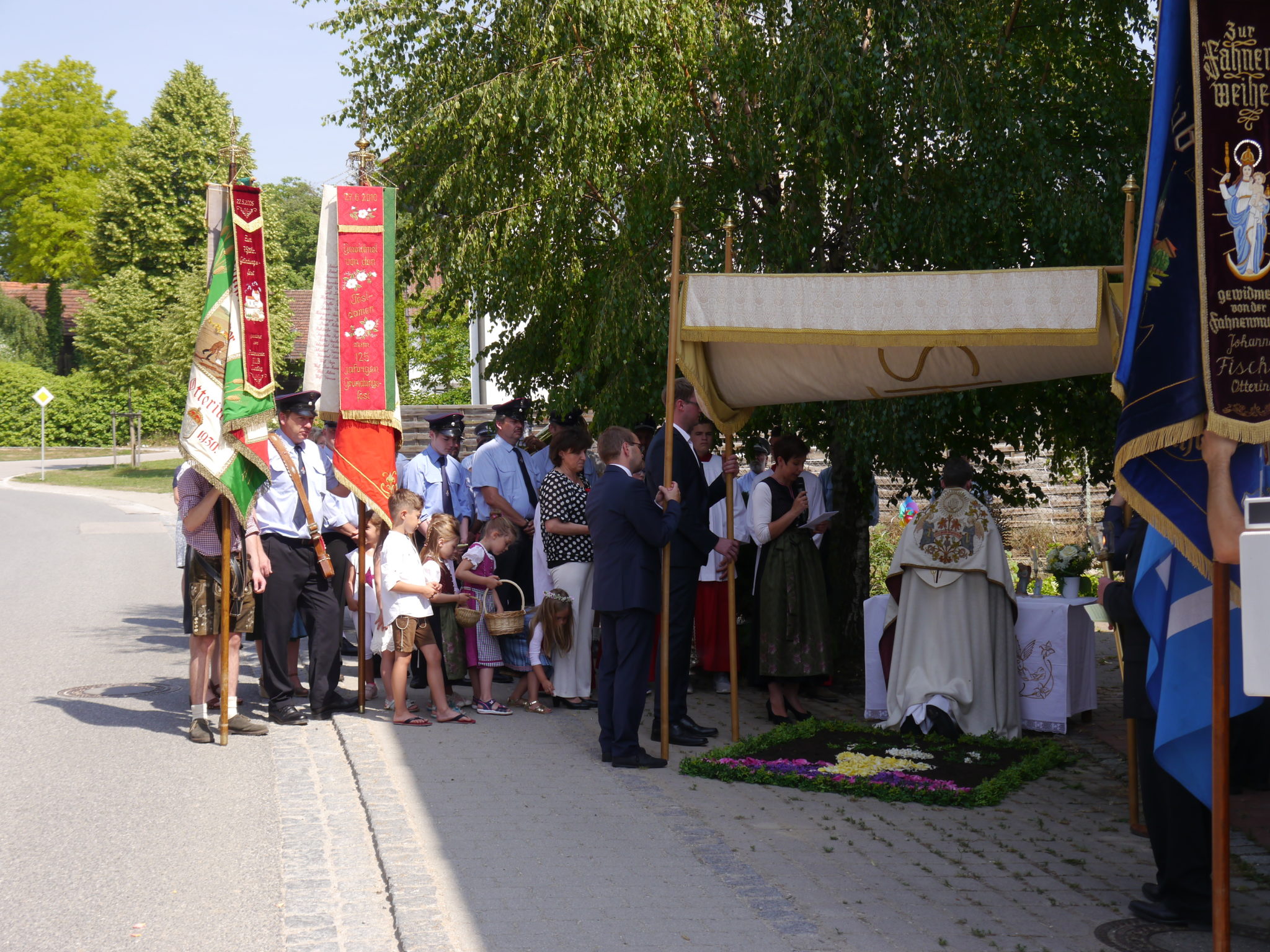 So auch in Ottering: Nach dem feierlichen Gottesdienst begleiteten die Gläubigen, die ortsansässigen Vereine und ihre Fahnenabordnungen Pfarrer Josef Hausner und den Leib des Herrn auf dem Weg zu den vier im Ortskern aufgebauten Altären. Auch dieses Jahr waren die Altäre wieder sehr liebevoll hergerichtet und geschmückt: beim Feuerwehrhaus, beim Kriegerdenkmal, beim Gasthaus Huber sowie bei Familie Weikl am Kirchenring.