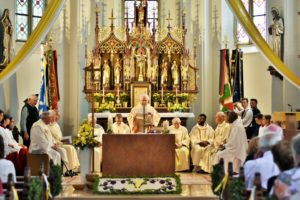 Der gebürtige Otteringer Pfarrer Josef Forstner begrüßte seine Mitbrüder, die ihn durch seine lange Wirkungszeit begleitet haben, ebenso wie die zahlreichen Bekannten, Verwandte und Freunde, die die festlich geschmückte Pfarrkirche St. Johannes bis auf den letzten Platz füllten. Doch er selbst, so Pfarrer Forstner, wolle heute nicht im Mittelpunkt stehen. Im Mittelpunkt solle – heute wie alle Tage – Jesus Christus stehen, der ihm die Kraft und den Mut gegeben habe, damals, vor 50 Jahren, „Ja“ zu Gott zu sagen.