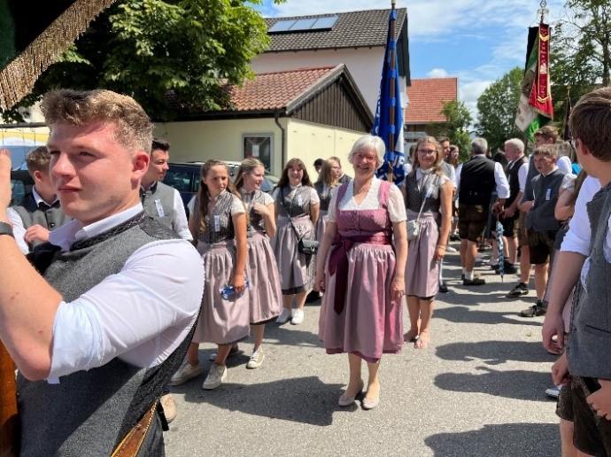 In der Predigt des vom Kirchenchor musikalisch umrahmten Gottesdienstes ging dann der Geistliche auf die unendliche Größe des menschlichen Herzens ein, das nicht durch die Güter dieser Welt nachhaltig gefüllt werden könne, sondern nur durch die Güte Gottes an Glück gewinnen könne. Abschließend gratulierte Pfarrer Nowak den beiden Vorständen Theresa Kargel und Raphael Breu zu ihrem Entschluss und die damit verbundene Durchführung dieses schönen Festes und wünschte der Landjugend mit dem Segen weiterhin eine positive Entwicklung, wobei er seine allseitige Bereitschaft zur Unterstützung untermauerte und zur Nachfeier gerne nicht fünfzig Liter Weihwasser, sondern der entsprechende Menge Bier stiften wolle.