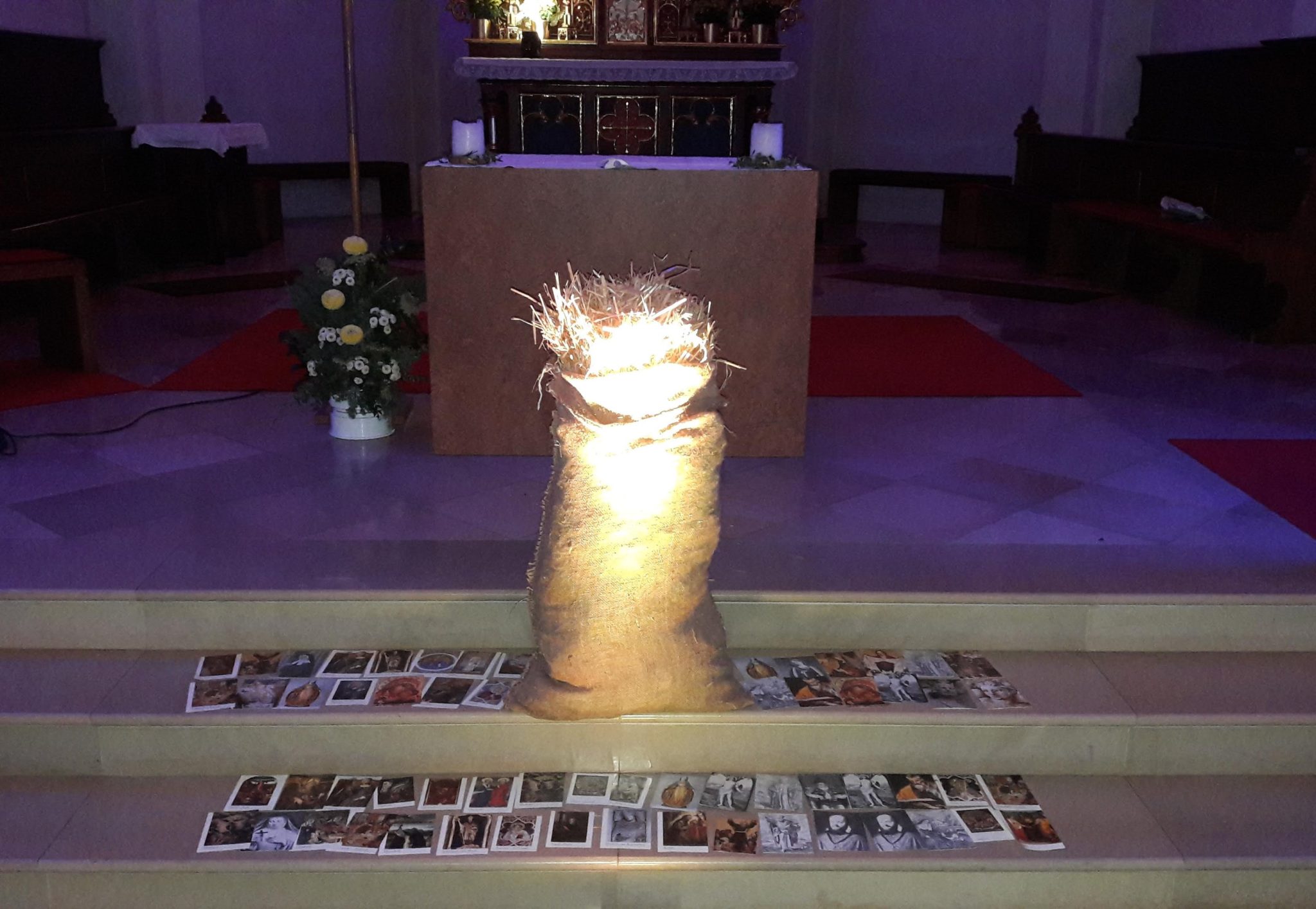 Anfang November waren die Christen in der Pfarrei Ottering und Umgebung zu einem neuen MAISL (Modernes Abendgebet im Scheinwerferlicht) in die Pfarrkirche eingeladen. „Ach, du heiliger Strohsack“, rufen wir im Alltag in manchen Situationen aus und genau diesen besonderen Heiligen stellte Pfarrer Hausner diesmal in den Mittelpunkt – und zwar im wahrsten Sinne des Wortes. Ein Strohsack stand vor dem Altar der in sanfte Farbtöne getauchten dunklen Kirche.