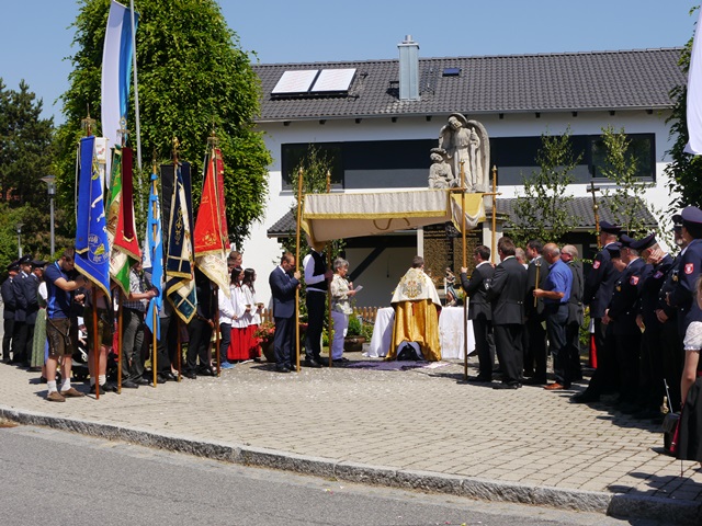 Bei sommerlichen Temperaturen machten sich nach der Hl. Messe viele Gläubige auf zur Prozession. Pfarrer Josef Hausner trug das Allerheiligste aus dem Gotteshaus unter dem „Himmel“ durch die Straßen von Ottering, hinein in unseren Alltag. Begleitet von den ortsansässigen Vereinen, der Feuerwehr Ottering, Krieger- und Soldatenkameradschaft, Marianische Frauenkonkregation, Katholische Landjugendbewegung und der FC Ottering mit Ihren Fahnen sowie den Pfarrgemeinderäten und dem Kirchenrat. Betend machte sich die Gemeinde auf den Weg zu den vier festlich geschmückten und liebevoll hergerichteten Altären und wunderschönen Blumenteppichen, die zu Ehren Jesu beim Feuerwehrhaus, beim Kriegerdenkmal, beim Gasthaus Huber sowie bei Familie Weikl am Kirchenring waren.
