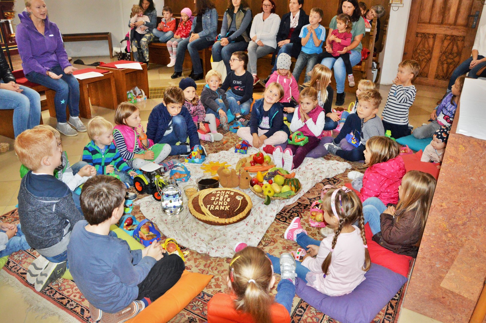 Ottering. Nach der Sommerpause folgten wieder viele bastelbegeisterte Kinder der Einladung der Pfarrgemeinderats-Ortsgruppe ins Dorfgemeinschaftshaus. Das Thema „Erntedank“ stand im Zentrum des Treffens. Unter Anleitung der beiden Pfarrgemeinderätinnen Astrid Obermeier und Sabine Simeth durften die Kinder kleine Erntedank-Körbchen basteln und mit viel Hingabe verzieren. Natürlich wurden die Körbchen sogleich mit frischem Obst, Gemüse und Nüssen sowie ein paar Süßigkeiten gefüllt. Im Anschluss daran zogen die Kinder in Begleitung ihrer Eltern zur Pfarrkirche St. Johannes, um für die reiche Ernte „Danke“ zu sagen. Nach der Begrüßung durch Pastoralreferentin Melanie Höppler lauschten die Kleinen gespannt der Erzählung aus der Bibel. Um das Thema noch weiter zu veranschaulichen, stellten sie symbolisch für das Gedeihen und Ernten unserer Nahrungsmittel Erde, Wasser, Körner, Früchte, Brot, Sonne und Erntemaschinen in die Mitte. Am Ende durften die Kinder ihre kleinen Erntedank-Körbchen stolz und voller Freude mit nach Hause nehmen.