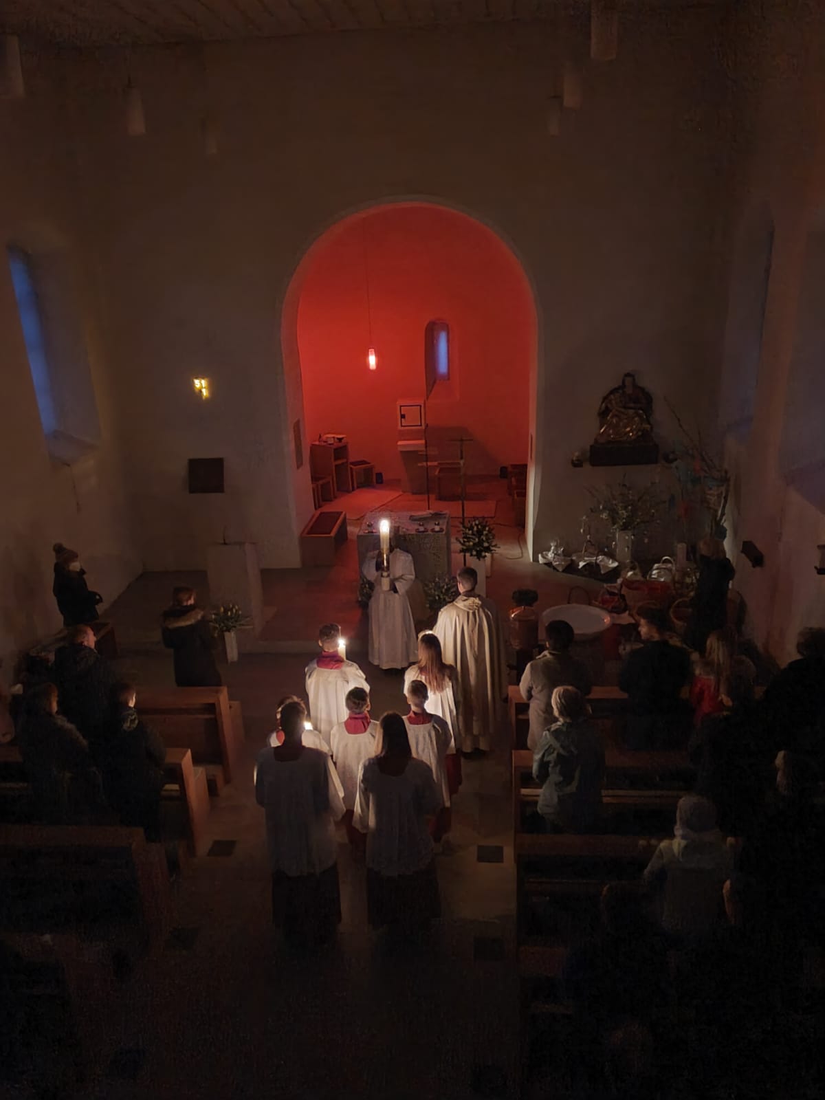 Es soll Menschen geben, die die Osternacht ganz gerne am Abend des Karsamstags feiern. Und es gibt Menschen, die am Ostersonntag zu unbequemen Uhrzeiten aufstehen und extra nach Moosthenning fahren, weil hier um 5.30 Uhr die Osternacht stattfindet. Diese Leute sagen: Zu erleben, wie die dunkle Kirche langsam mit Licht geflutet wird, wie es langsam wärmer wird, die Vögel draußen zu singen beginnen, wie die Sonne aufgeht, als ob die ganze Natur die Liturgie begleiten möchte – das allein ist die frühe Uhrzeit wert.